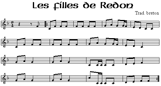 《Les filles de Redon》是为笛子整理的歌曲乐谱。此乐谱来自布列塔尼。此曲为传统音乐。