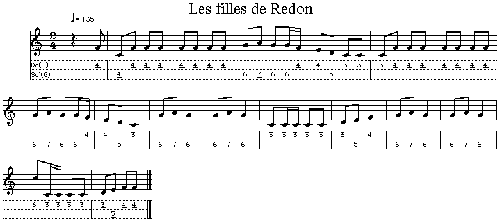Les filles de Redon》是为手风琴整理的歌曲乐谱。此乐谱来自布列塔尼。此曲为传统音乐。