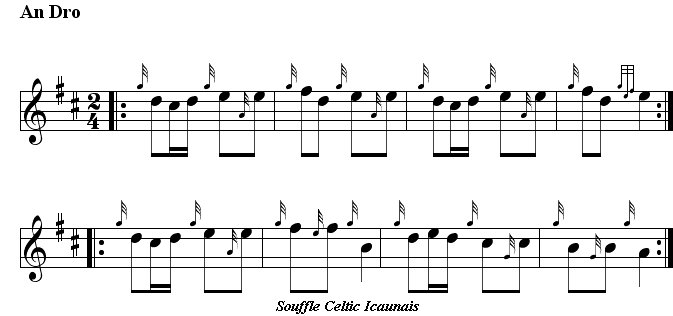 《An Dro》是为苏格兰风笛整理的an dro乐谱。此乐谱来自瓦纳地区。此曲为传统音乐。