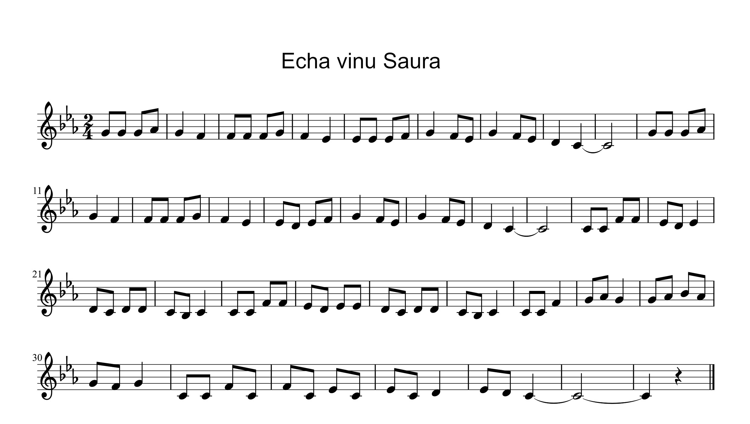 《Echa vinu Saura》是为西班牙风笛整理的panceau乐谱。此乐谱来自坎塔布里亚。此曲为传统音乐。